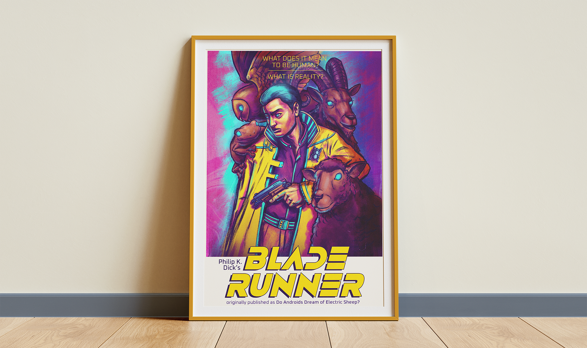 This fictional project was developed as a book cover for "Do Androids Dream of Electric Sheep?" by Philip K. Dick, the work that inspired the film "Blade Runner."
