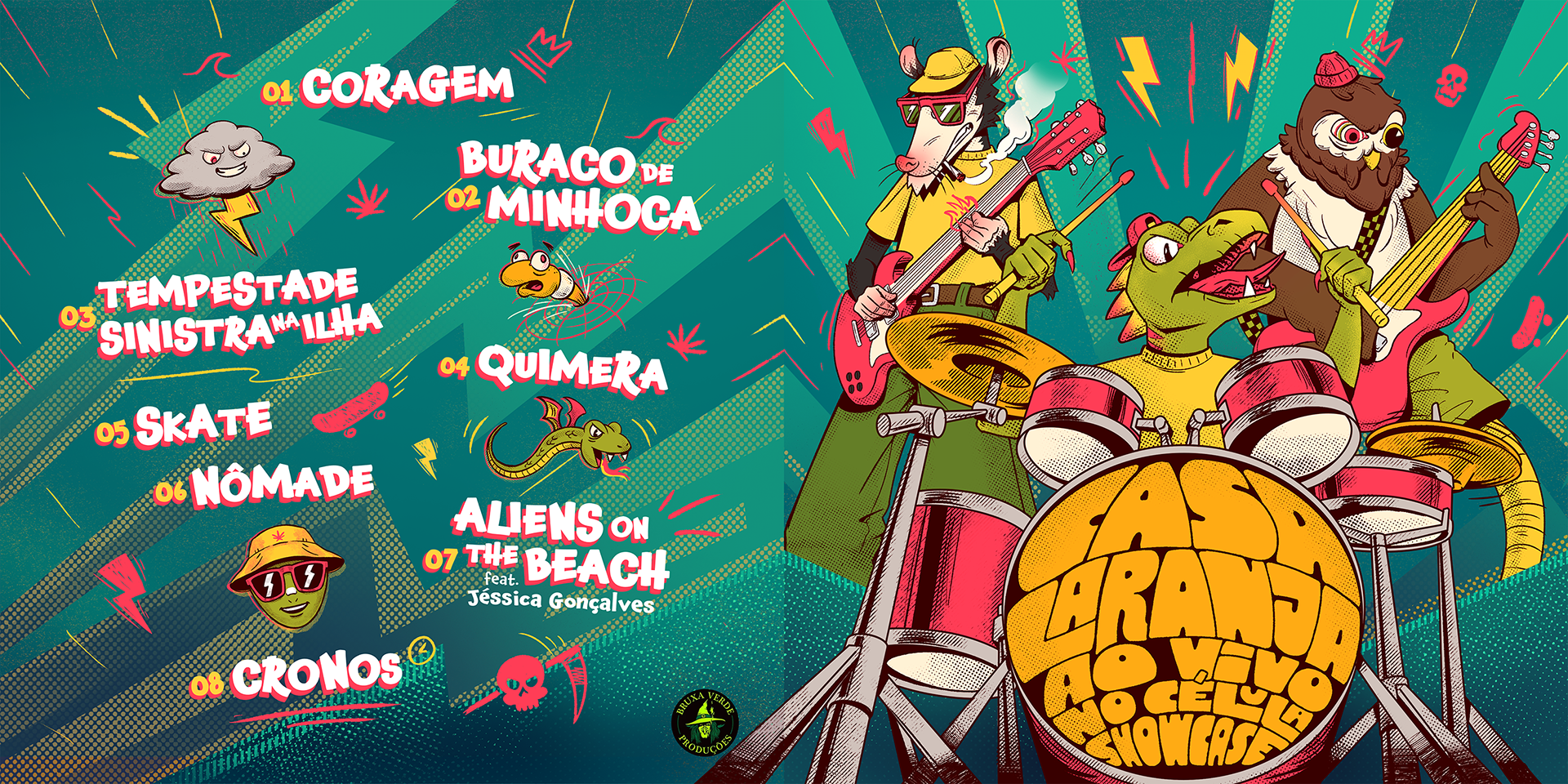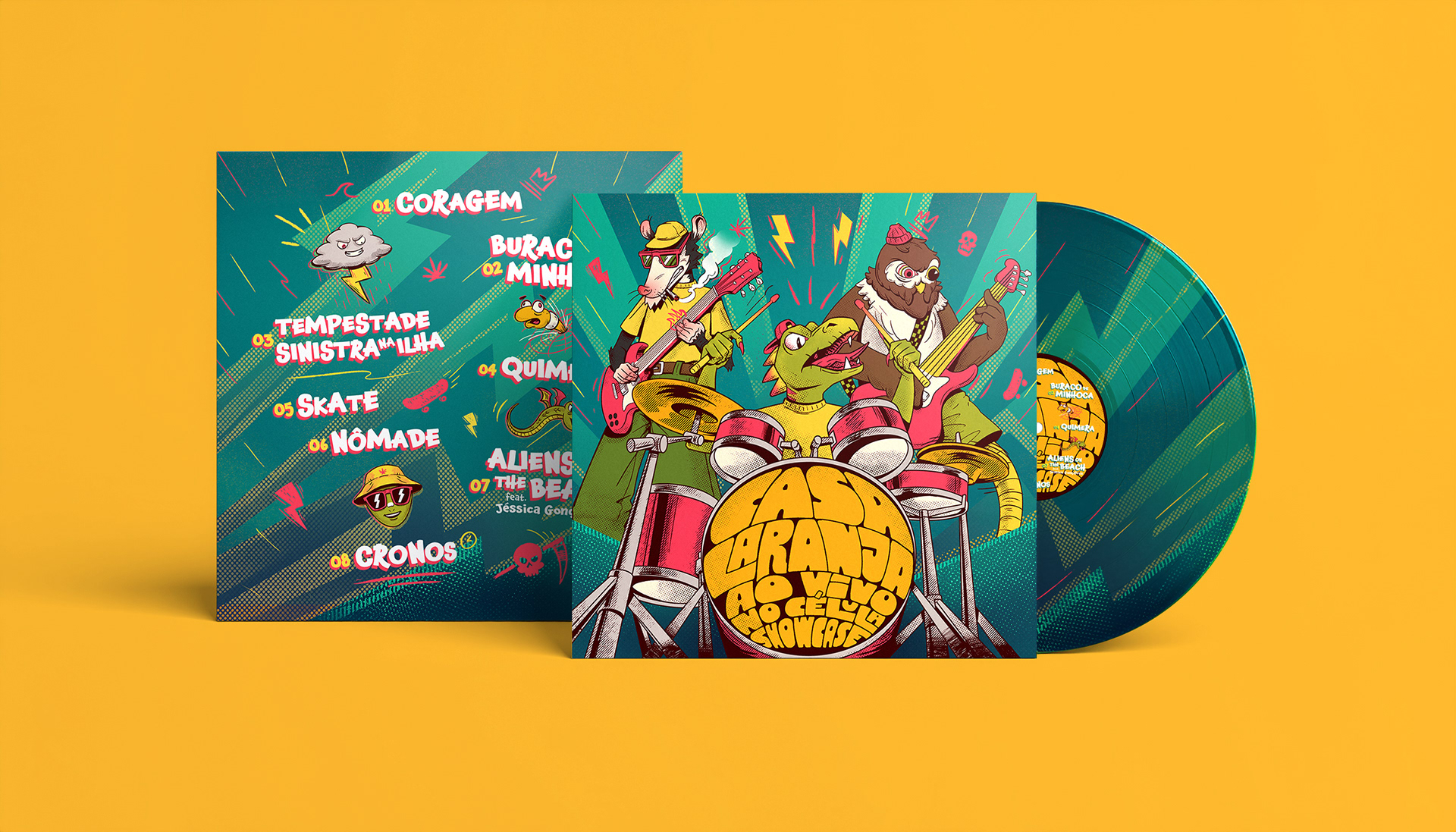 A banda Casa Laranja me convidou para desenvolver a arte de capa e os materiais de divulgação do seu novo álbum Ao Vivo no Célula Showcase. A proposta era representar cada integrante como um animal, traduzindo visualmente a energia e a intensidade da banda.