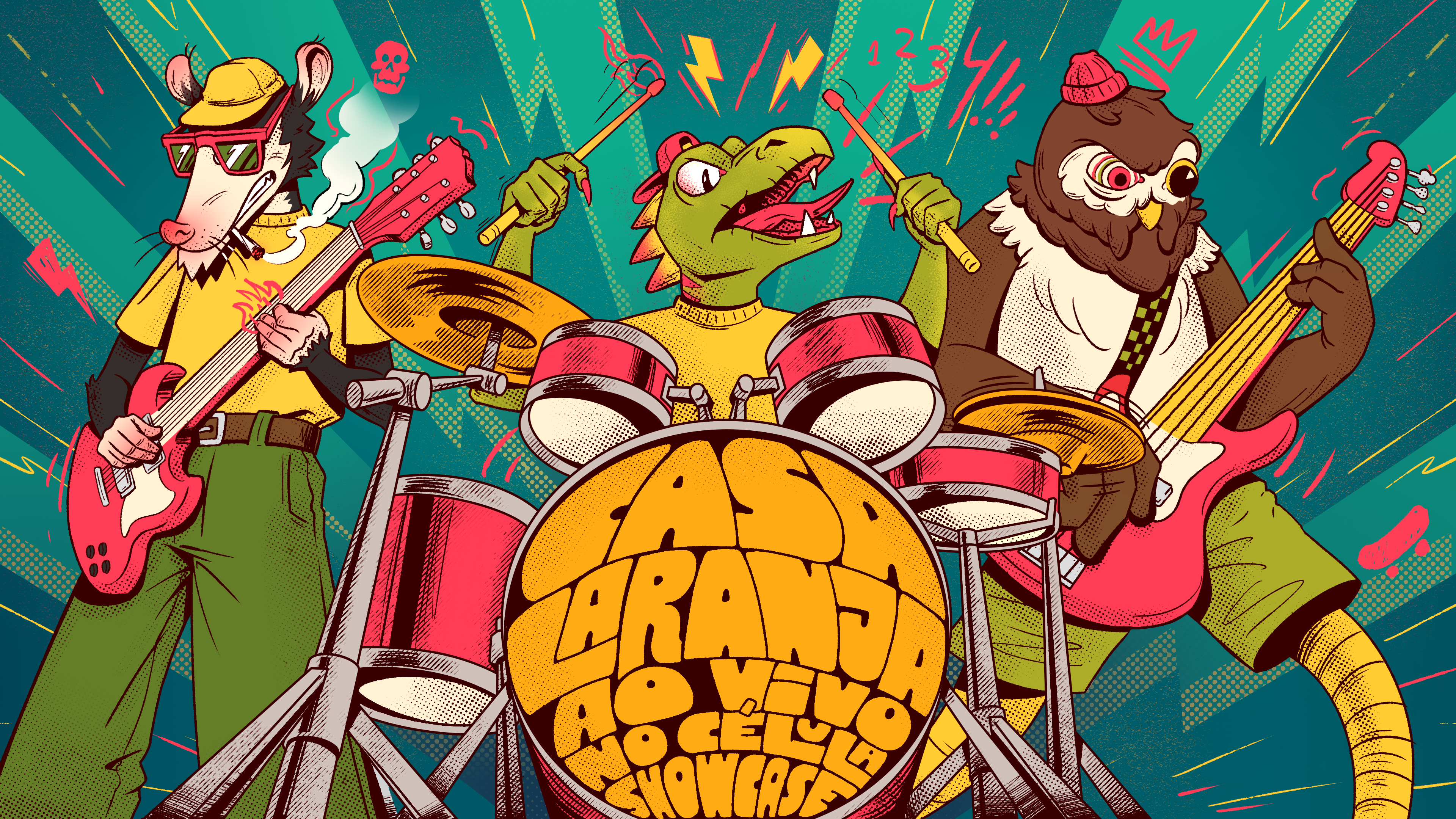 A banda Casa Laranja me convidou para desenvolver a arte de capa e os materiais de divulgação do seu novo álbum Ao Vivo no Célula Showcase. A proposta era representar cada integrante como um animal, traduzindo visualmente a energia e a intensidade da banda.