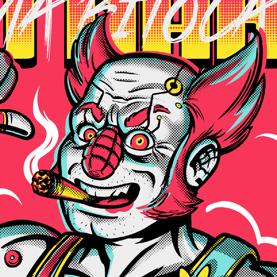 Ozob is a replicant with a grenade in place of his nose, created by Deive Pazos for the Nerdcast RPG by Jovem Nerd.