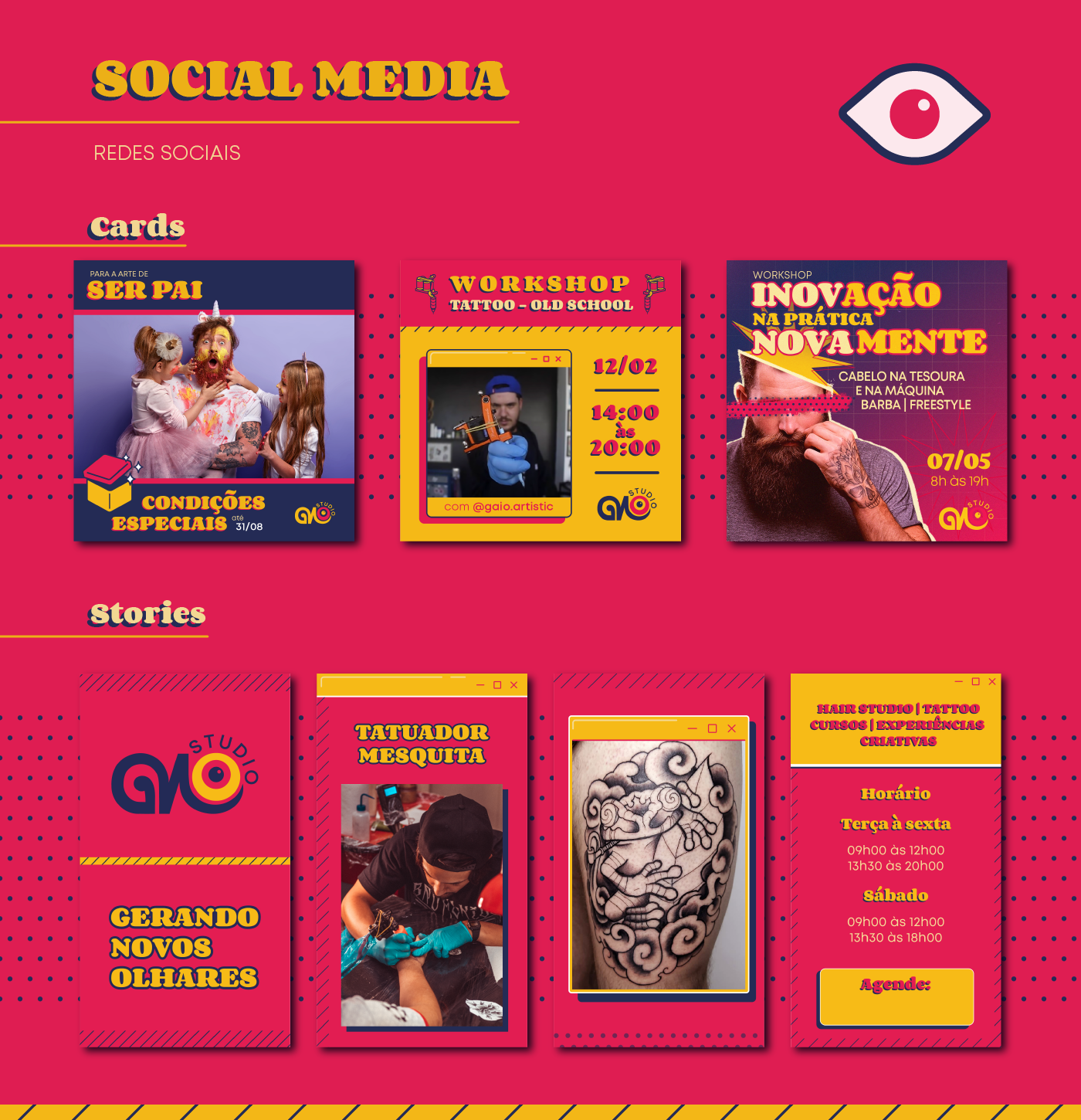 GNO STUDIO é um estúdio de Tatuagem + Hair Studio que carrega arte e a criatividade em sua essência. Procurando uma abordagem alternativa para o que um Hair Studio deveria ser, tanto suas cores quanto os ícones ilustrados transmitem uma aparência jovem, audaciosa e misteriosa.