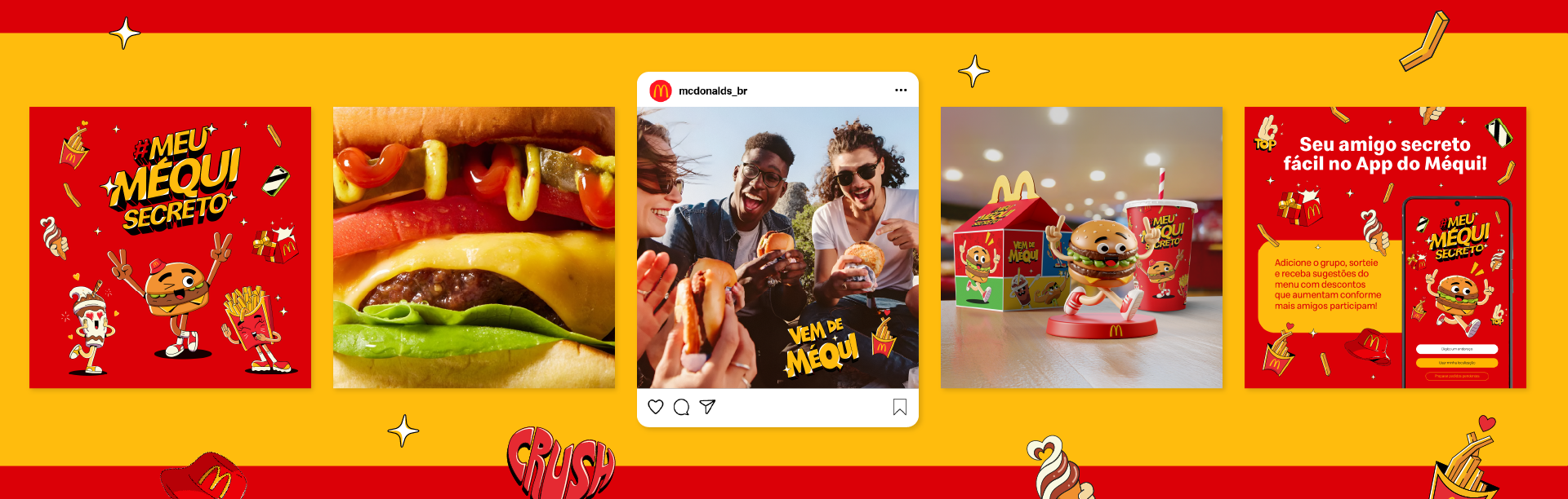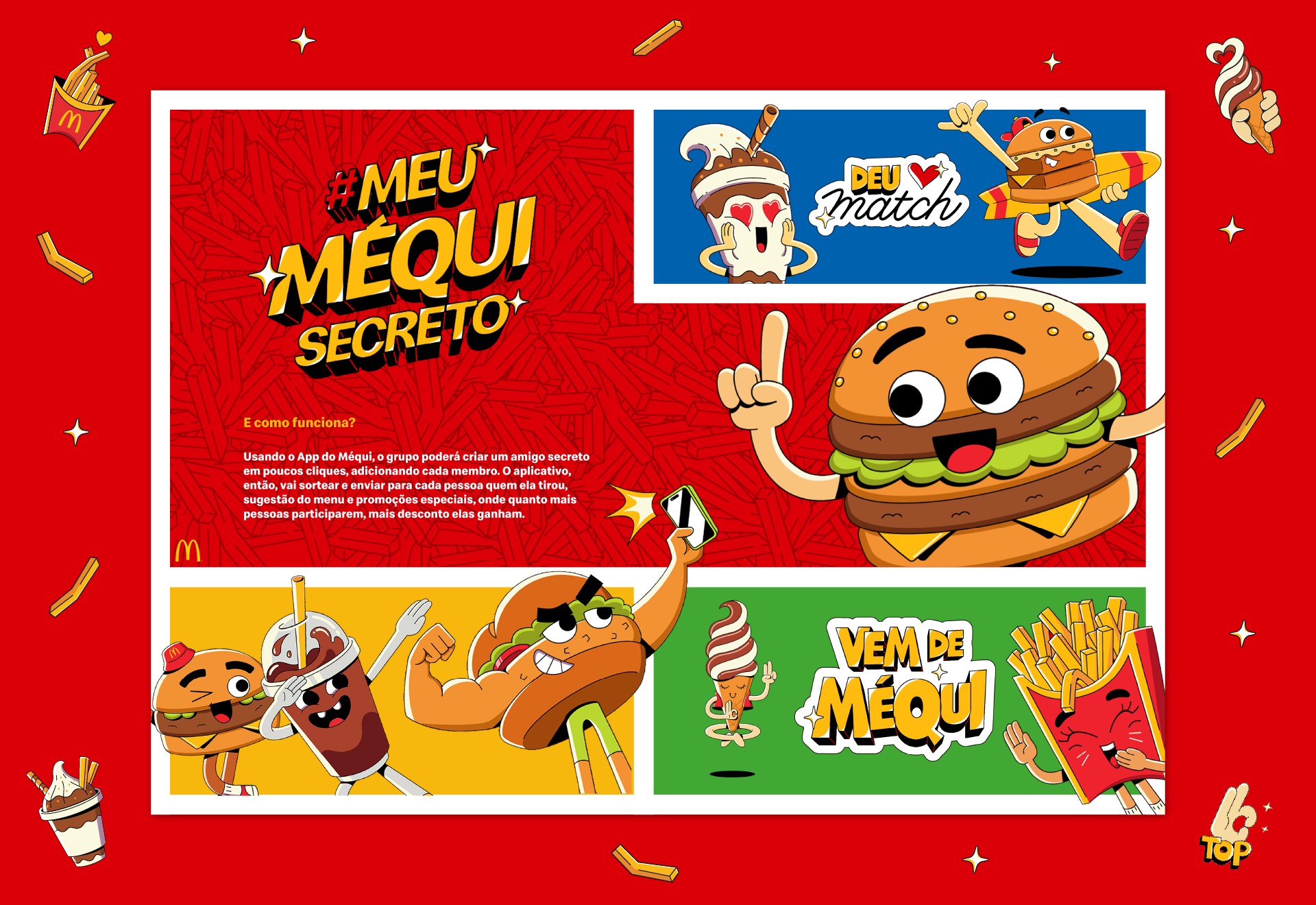 [PT-BR] #MeuMéquiSecreto traz o espírito das festividades de final de ano para dentro do McDonald’s. A campanha, inspirada na dinâmica do amigo secreto, apresenta 8 personagens originais que representam os diferentes tipos de amigos em um grupo. Incentivando que o grupo se reúna nos restaurantes do Méqui para a troca de presentes e aproveite benefícios como combos e itens grátis. #MeuMéquiSecreto é um projeto projeto educacional sem fins lucrativos, desenvolvido para o curso Pé na Porta da Escola Arte Revide. [EN] #MeuMéquiSecreto brings the spirit of the end-of-year festivities into McDonald’s. The campaign, inspired by the Secret Santa tradition, introduces eight original characters that represent different types of friends within a group. It encourages groups to gather at Méqui restaurants for gift exchanges and to enjoy perks like combo deals and free items. #MeuMéquiSecreto is a non-profit educational project developed for the Pé na Porta course at Escola Arte Revide.