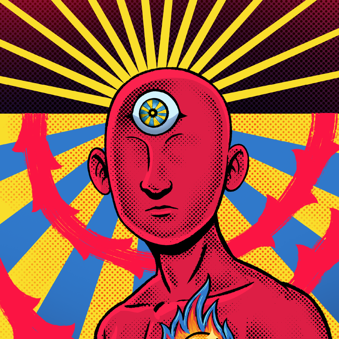 Do latim Revelar: ato de mostrar, descobrir, destapar, remover o véu. Revelatio é uma arte criada para estampar uma linha de shapes de skate da marca CONSIS.