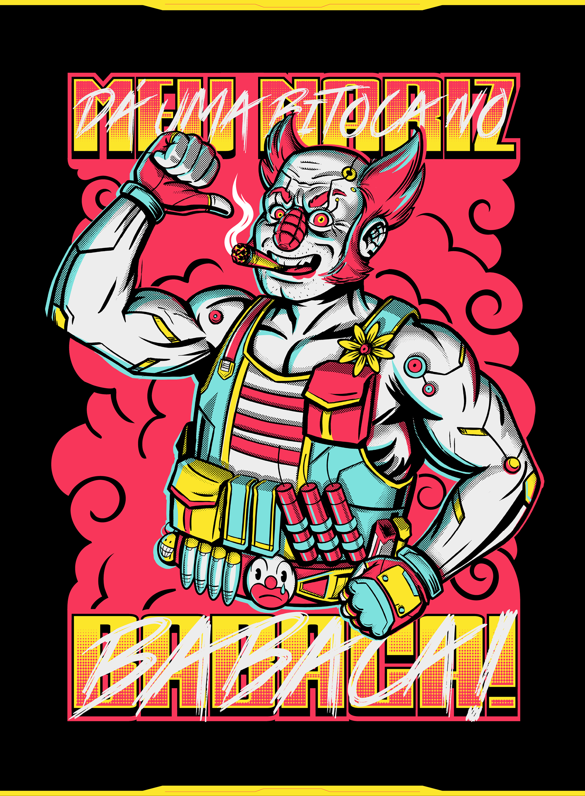 Neste projeto, desenvolvi minha própria interpretação do personagem como uma estampa de camiseta ostentando o clássico bordão dele: